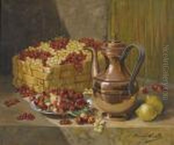 Stillleben Mit Johannisbeeren, Kirschen Und Kanne