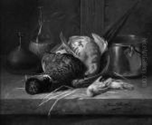 "jagdstillleben Mit Fasan". Sign. Ol Auf Lwd. 54 X 64,5 Cm. Rahmen