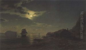 Maaneskinn Over Bankefjord Seet Fra Saanum (ved Mandal)