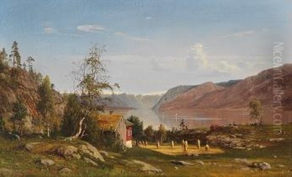 Fjordlandskap Med Hoystakker 1870