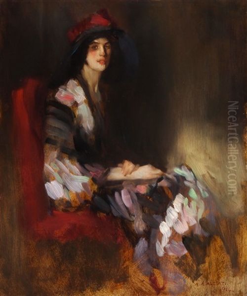 Bildnis Einer Eleganten Dame Mit Buntem Schal