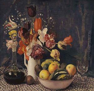 Stilleben Med Tulpaner I Vas Pa Bankskiva