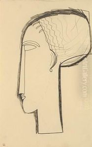 Tete De Profil A Gauche Avec Chignon Et Boucles D'Oreilles