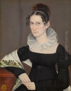 Portrait Of A Lady In A Black Dress Wearing A Lace Bonnet