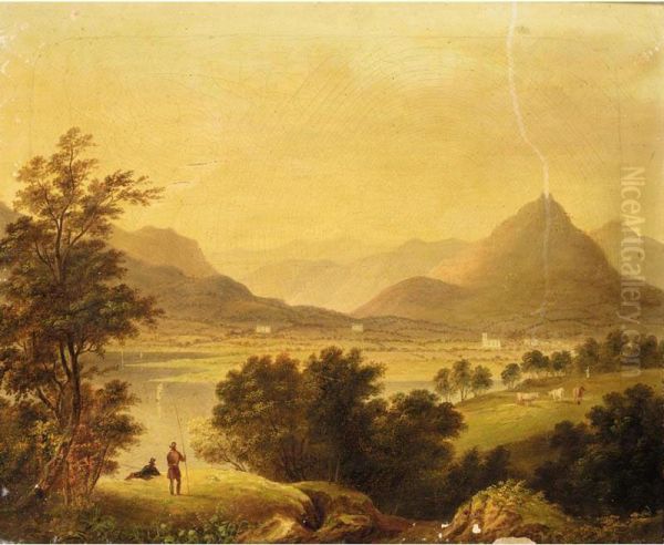 View Of Grassmere Lake, With Gentlemen Fishing In The Foreground