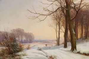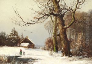 Winter landscape with a farmer leading a horsewagon.