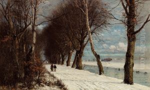 Winter landscape with wanderers.