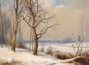 A winter landscape with a mill.
