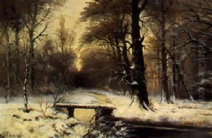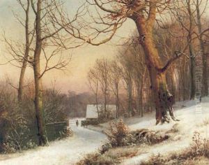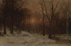 A Winter Woodland At Sunset