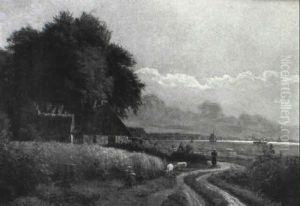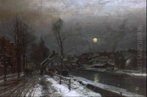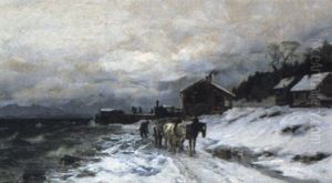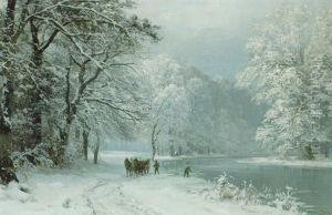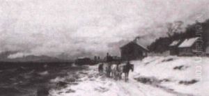 Winter Landscape With Horses And Carts By A River