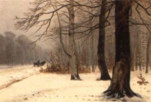 En Vinterdag I Skoven, I Baggrunden Hestek+ret+j