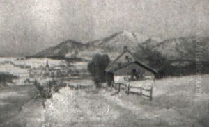 Bjerglandskab Med Alob Og Huse, Vinter