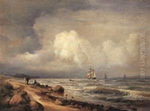 Kystparti Med Figurer Og Sejlskibe