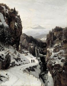 Sydtysk vinterlandskab med radyr, skov og alob.