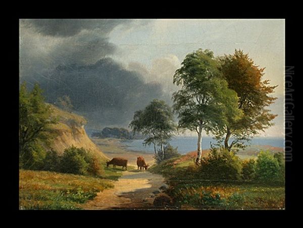 Kuhe Neben Hirten Vor See Oil Painting by Anders Andersen-Lundby