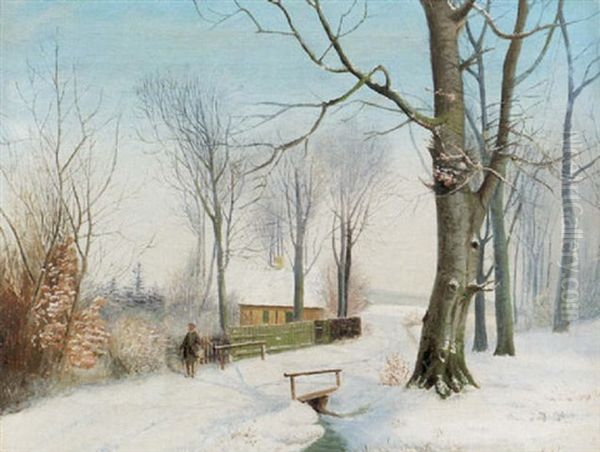 Bring the timeless beauty of Anders Andersen-Lundby's Solig Vinterdag Med Man Pa Vag into your home with a handmade oil painting reproduction. Carefully recreated on canvas by skilled artists using traditional techniques, this piece captures the delicate brushwork, subtle light, and vibrant color of the original masterpiece. With museum-level quality and rich texture, it brings elegance and artistic depth to any space. Enjoy free shipping and make this masterpiece a part of your personal collection.