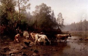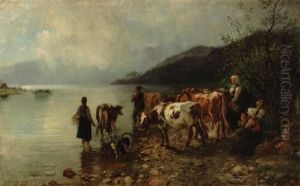 Norwegische Gebirgsgegend Mit Heimkehrenden Kuhen