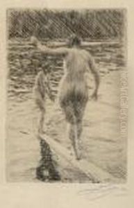 Naken modell vid en dorr. Ur skissbok