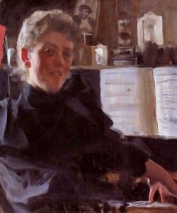 Portrait of Fru Lisen Samson, nee Hirsch, Arranging Flowers at a Window