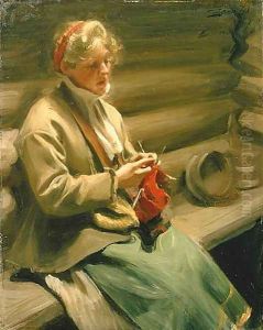 Girl from Dalecarlia knitting