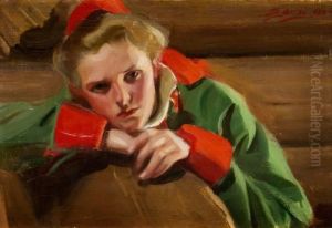 Dalecarlian Girl Knitting. Cabbage Margit