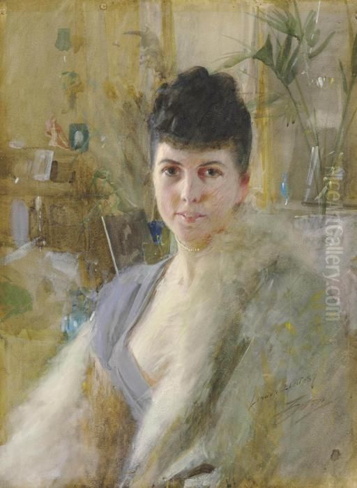 Portrait Of A Lady In A Drawing Room Oil Painting - Anders Zorn