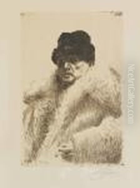 Sjalvportratt I Vargskinnspals Oil Painting - Anders Zorn