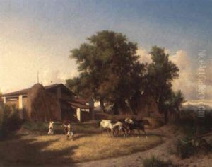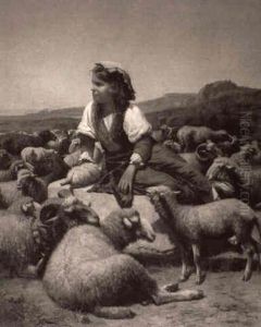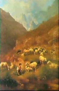 Hirten Mit Weihdenden Kuhen Und Schafen
