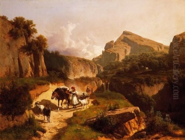Italian Landscape With Shepherd Girl