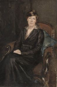 Portrait Of A Lady, Seated Half-length, In A Black Dress And Whiteshirt