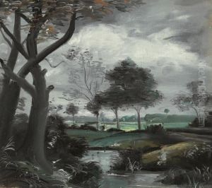 Paysage Avec Maison Rose.