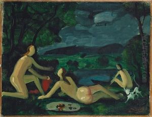 Trois Nus Et Chien Dans Un Paysage
