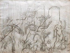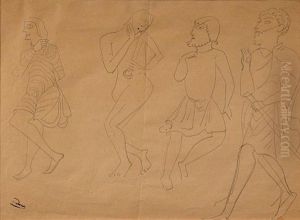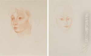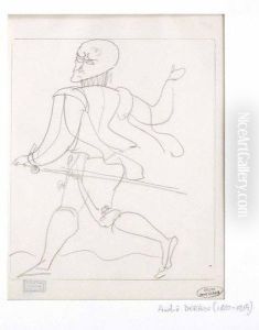 Figurliche Skizzen - Kopfstudie Mit Hahn