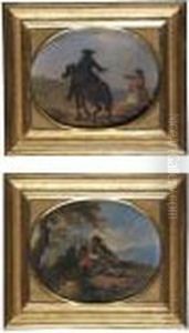 An Italianate Landscape With Shepherds And Their Flock With Other Workers At Rest Under A Tree, Ruins Beyond; And An Italianate Landscape With Peasants At Rest By An Inn