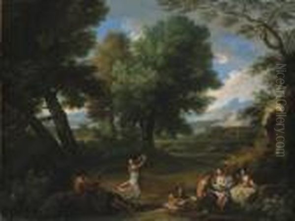 Nymphs And Satyrs In A Wooded Landscape