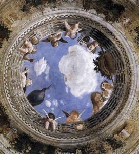 Camera degli Sposi, detail featuring Putti Holding Dedicatory Tablet