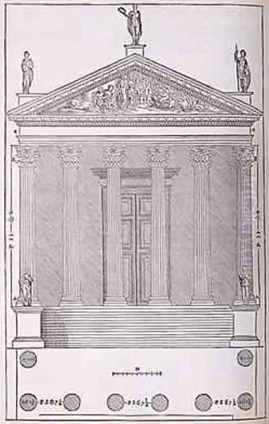 Elevation of the Temple of Castor and Pollux, illustration from a facsimile copy of I Quattro Libri dellArchitettura written by Palladio, originally published 1570