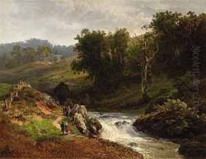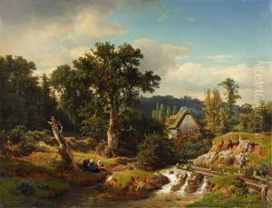 Bergige Landschaft Mit Bach Und Wassermuhle