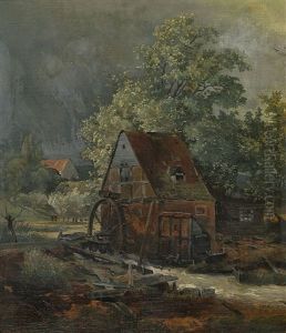 Muhle An Einem Bach In Wolkenverhangener Landschaft