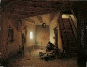 Alte Wassermuhle Mit Bauerin Auf Einem Feldweg