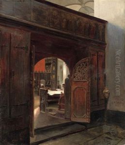 Vor Dem Aachener Dom. Blick Auf Eine Feierlich Gekleidete Menschenmenge Vor Dem Geoffneten Hauptportal. Monogrammiert Unten Rechts: O.a