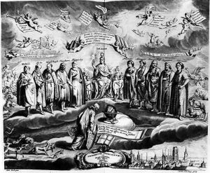 Nicolaus Copernicus (1473-1543), detail from a Map showing the Copernican System of Planetary Orbits, 'Planisphaerium Copernicanum', from 'The Celestial Atlas, or The Harmony of the Universe'