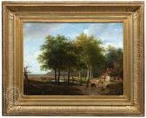 View Of A Watermill In Woodland, With A Haycart Approaching On A Track To The Right