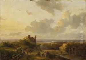 Figures Before A Cottage In An Extensive Wooded Landscape