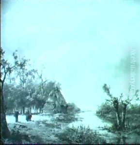 A View Of A Frozen Canal With Figures Near A Horse Drawn Sledge