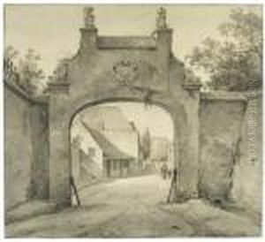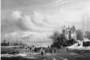 Skaters On A Frozen River, Near A Mill And A Donjon