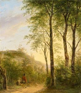 A Peasant On A Sandy Path In A Hilly Landscape With A Birch Tree