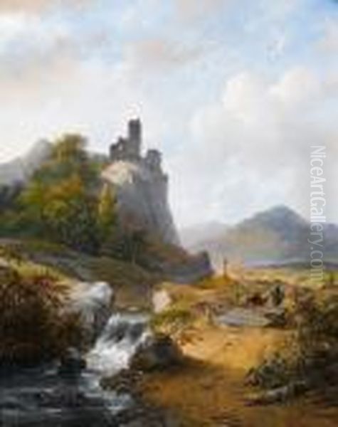 A Landscape With A Traveller Crossing A River