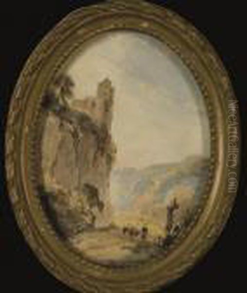 Paysage Rocailleux, Une Femme Sur Un Chemin Et Une Eglise Sur Les Hauteurs