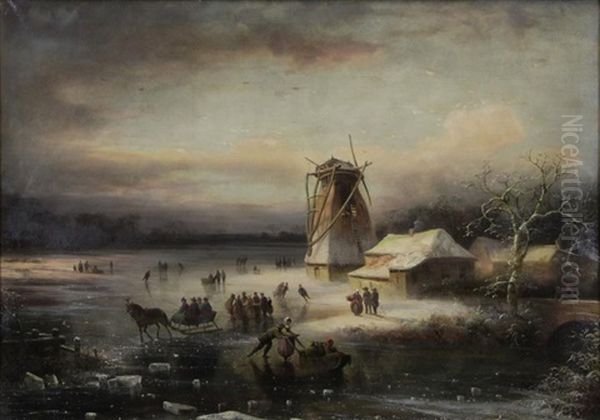 Winter Landscape With Figures On Ice